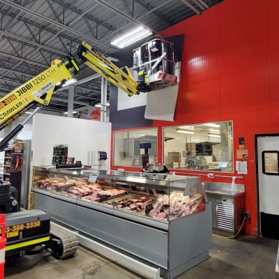 Equipped with 300 Ah-48 V lithium battery. Max working height 12.2 mt, Max Outreach 7 mt. Boom rotation 110°+110°, Basket rotation 70°+70°. Self Levelling, extensible carriage. Radio remote as option. Product Page: ALMAC JIBBI 1250 LTH crawler telescopic boom lift