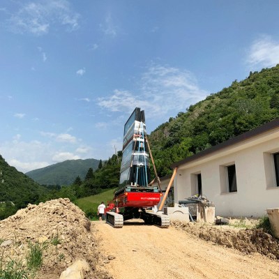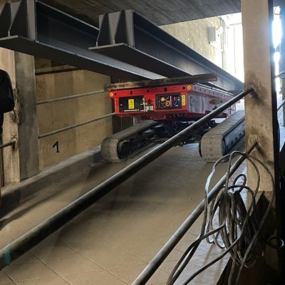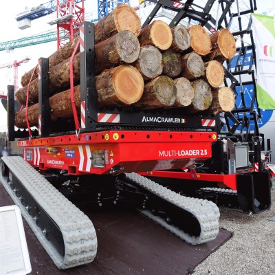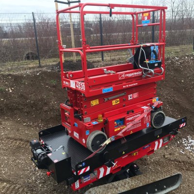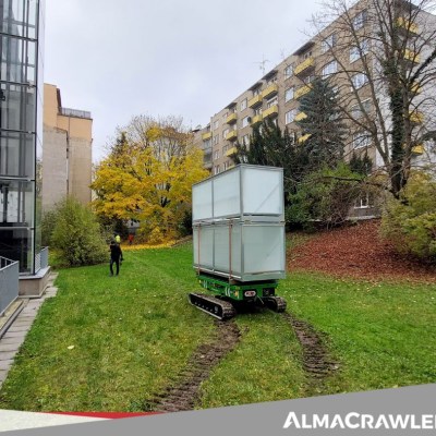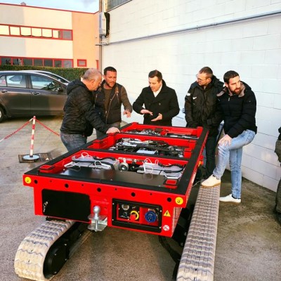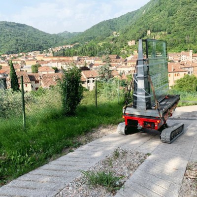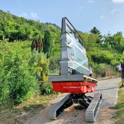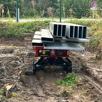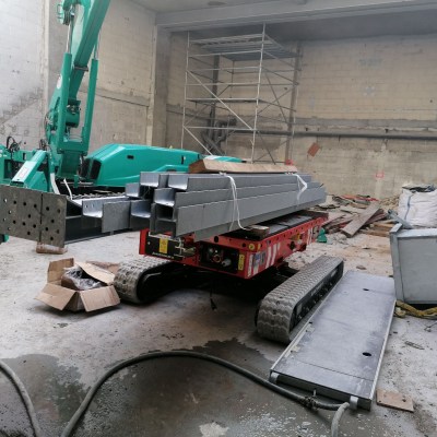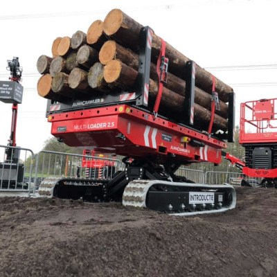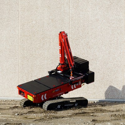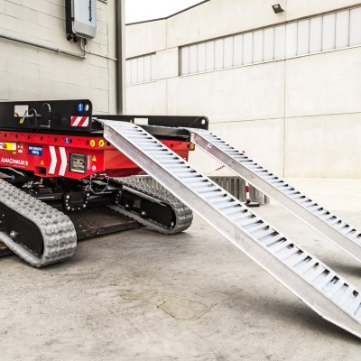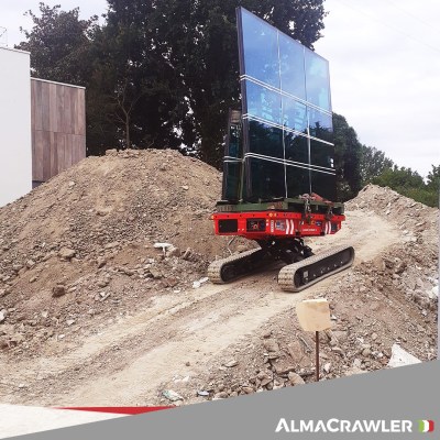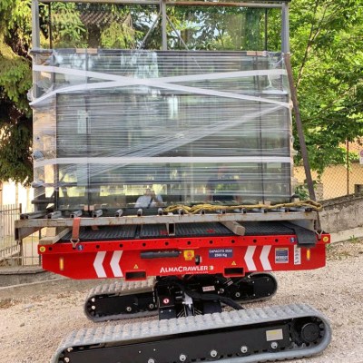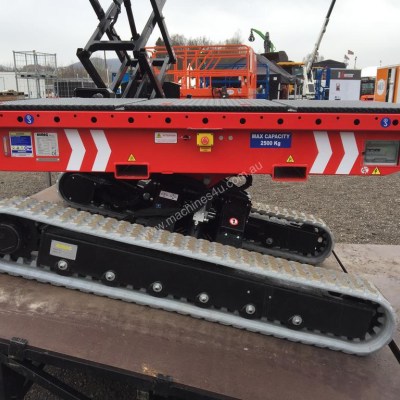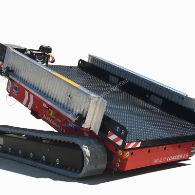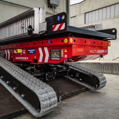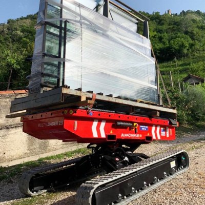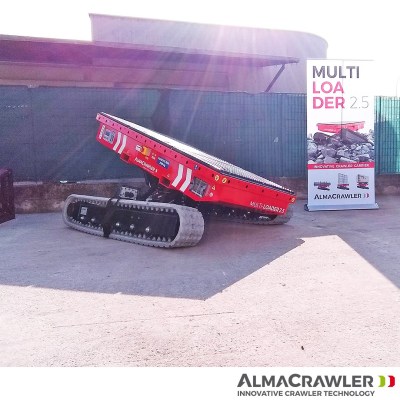Equipped with 180 Ah-48 V lead battery. Max load 2.5 tons, Max longitudinal gradient 25°, Max lateral gradient 25°. Self levelling. Radio remote included. Product Page: ALMAC MULTILOADER 2.5 PERFORMANCE tracked carrier