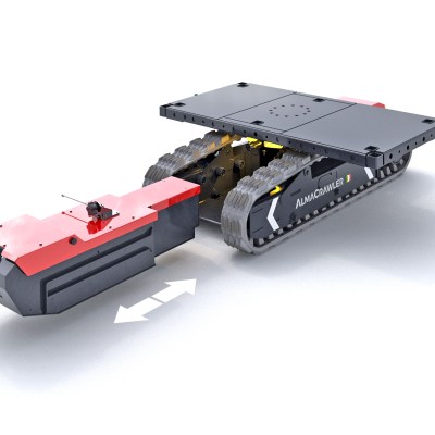 Equipped with 100 Ah-48 V lithium battery and swiwel platform. Max load 3 tons, Max longitudinal gradient 45°, Max lateral gradient 30°. Radio remote included. Product Page: ALMAC MULTILOADER 30 FX LTH tracked carrier