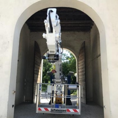 Palazzani aerial platforms can operate almost everywhere. Available with diesel engine and electric motor, with batteries, or with a single-phase socket outlet. Designed to pass through a normal door and operate in enclosed and crowded environments. They can easily work in tight spaces, on irregular and steep slopes, on delicate and low-capacity floors. Product Page: PALAZZANI