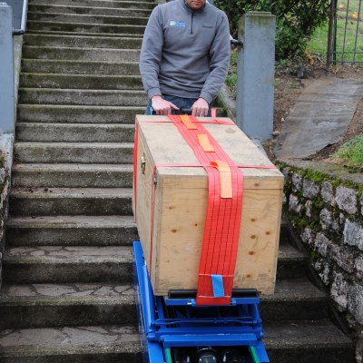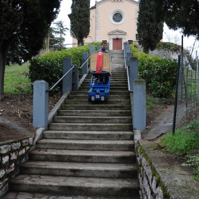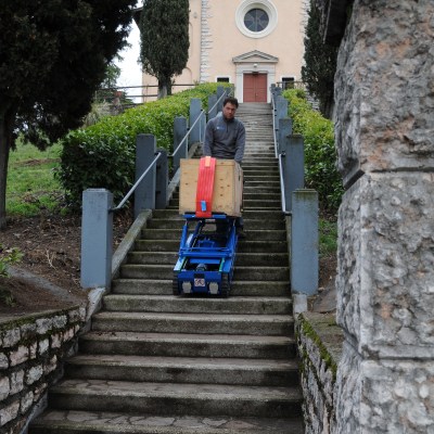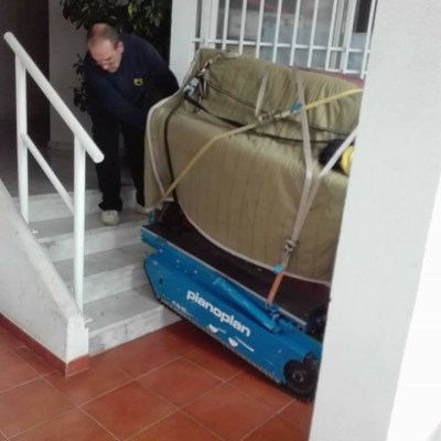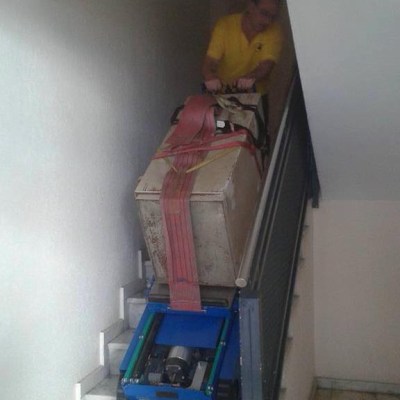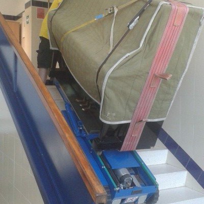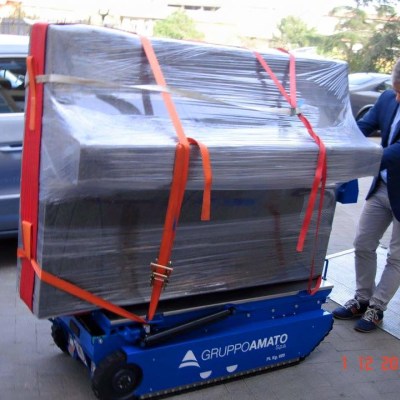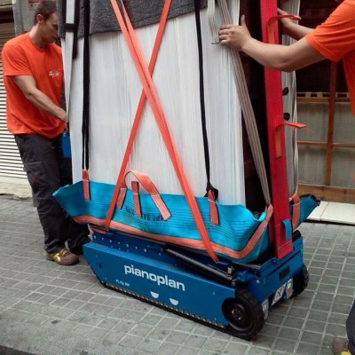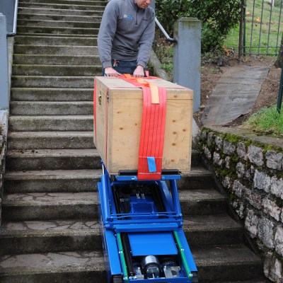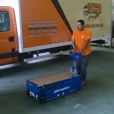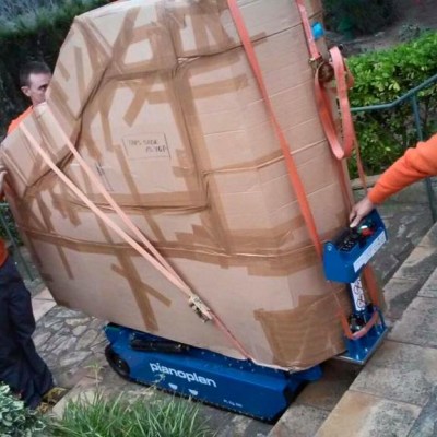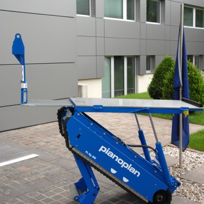 HORIZONTAL model has been designed to facilitate anchoring, the loading and transport of certain types of material, or to facilitate their storage. It is ideal for the transport of objects to horizontal dimensions, such as grand pianos, printers, photocopiers, and for all types of objects that need to maintain a horizontal position. For example, to transport a photocopier, that requires to be kept in a horizontal position to prevent fluid loss, the model PIANOPLAN HORIZONTAL facilitates the loading and carriage in the correct position. Or, to deposit a piano from the ground level on a mezzanine level, as a stage, PIANOPLAN HORIZONTAL is perfect. Main features: same as Pianoplan Standard, plus a horizontal movable platform to allow the transport of objects while maintaining a horizontal position. Product Page: PIANOPLAN 600J SPEEDY HORIZONTAL stair climber